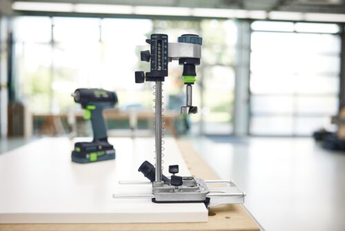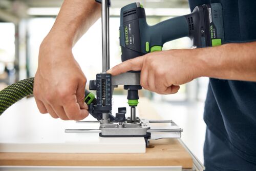 El adaptador de perforación móvil MB 40 es la herramienta que necesitas cuando buscas precisión. Como ayuda compacta para taladrar, te permite perforar en ángulo recto con precisión milimétrica y de forma repetitiva, independientemente de dónde estés trabajando. Además, opcionalmente, hay disponibles diferentes topes y el ajuste preciso de la profundidad, para que puedas taladrar con facilidad agujeros verticales, agujeros frontales y agujeros en hileras. Para tener una buena visión del lugar de perforación, puedes acoplar el sistema de aspiración directamente a la placa base. Como adaptador FastFix adicional, es ideal para tus aplicaciones de taladrado en madera, metal y plástico, ampliando así las posibilidades de aplicación de tu taladro atornillador a batería de Festool.