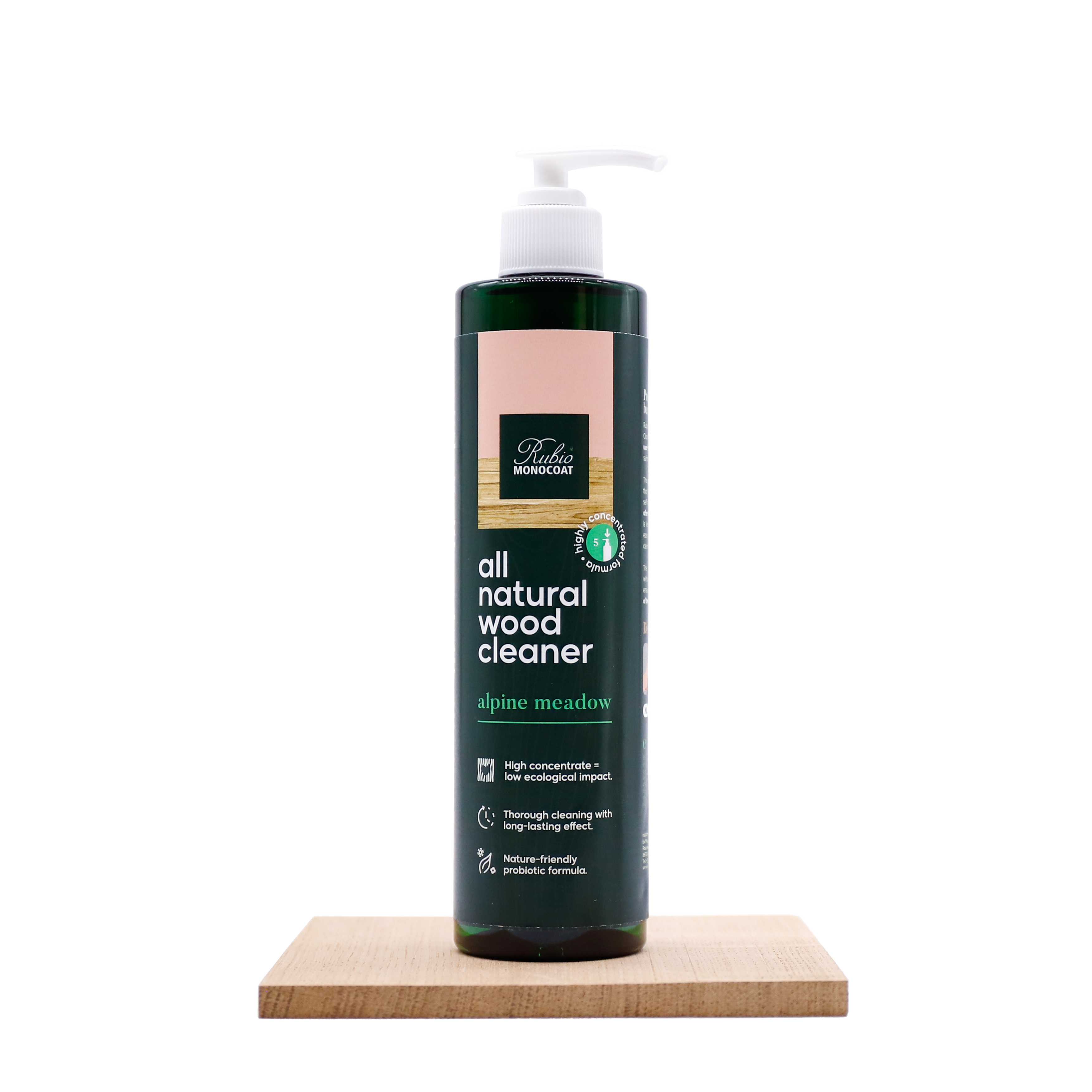 Rubio Monocoat All Natural Wood Cleaner es un limpiador seguro, sostenible y fácil de usar para todas las superficies de madera. Por sus propiedades microbiológicas y sus microorganismos activos, tiene un efecto autolimpiante y es de acción prolongada, ya que impide que la suciedad vuelva a adherirse fácilmente, y facilita su eliminación en la siguiente limpieza. El producto limpia la superficie sin dejar ninguna capa sobre ella, y mantiene el aspecto mate y natural de la madera. Además, el All Natural Wood Cleaner está muy concentrado, y por tanto es extremadamente económico. Es un producto