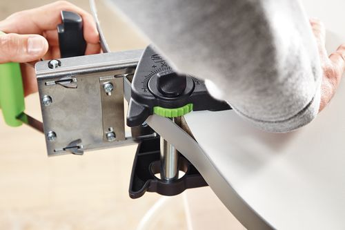 La herramienta para tronzar KP 65/2 no solo permite cortar los salientes de los cantos rectos perfectamente al ras, sino que también permite obtener bordes limpios al cantear tableros redondos de mesas.