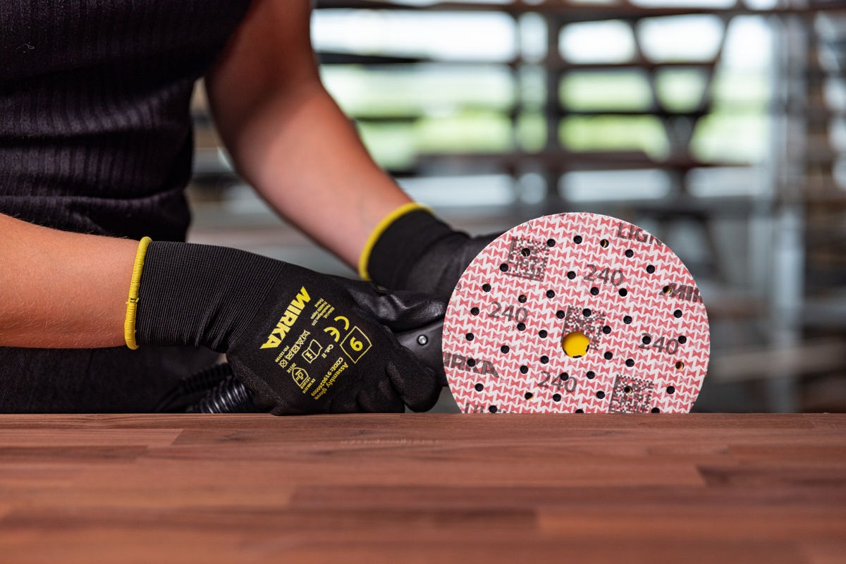 Sus canales de polvo que desembocan en orificios de extracción controlan el polvo, manteniendo los granos abrasivos cortantes, y como el aire circula bajo el abrasivo reduce el calor durante el lijado, una ventaja importante al lijar madera natural, evitando que el polvo de madera se convierta en una masilla que genere embozamiento. Ni siquiera las partículas de polvo de madera más grandes suponen un problema gracias a los canales de polvo de anchura diferente. La exposición al polvo de madera es un riesgo importante para la salud en el trabajo, por lo que Ultimax Ligno ha sido diseñado desde un primer momento con la tecnología de lijado libre de polvo de Mirka.