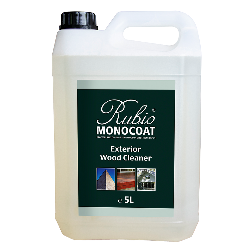 Wood Cleaner de Rubio Monocoat es un limpiador preparatorio para todo tipo de madera de exterior que elimina la coloración grisácea, el musgo y la suciedad.