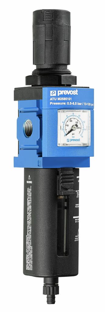 El filtro regulador ATU M2585101 es un grupo de mantenimiento compacto para aire comprimido, pensado para la instalación en puntos de consumo (herramientas neumáticas, pistolas, lijadoras, etc.) de talleres e industria.