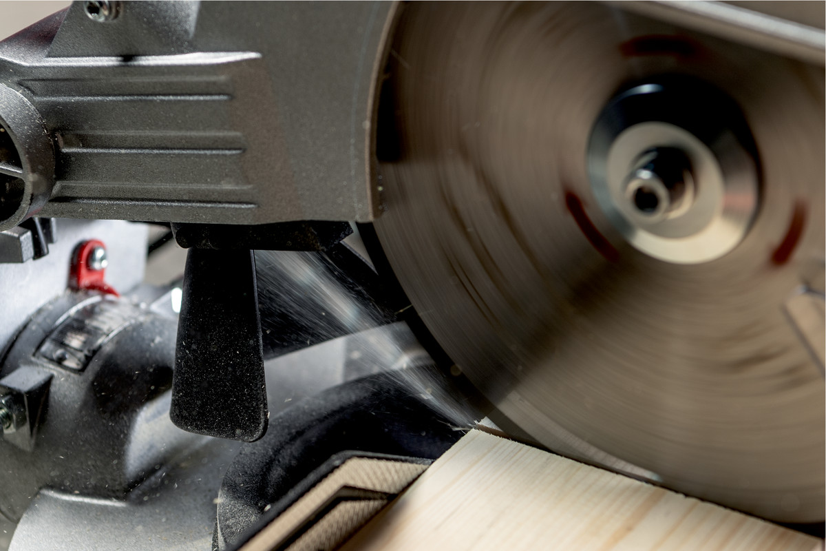 La mesa de trabajo tiene ensanches extensibles desmontables para apoyar piezas largas y topes altos desplazables lateralmente para mayor seguridad. Se incluye como estándar una pinza para sujetar el material, herramienta para cambiar la hoja, saco colector de virutas y dos ensanches de mesa integrados. Todas las escalas y mandos son visibles y fáciles de controlar en cualquier posición de trabajo. El cambio de hoja es fácil gracias al bloqueo del husillo sin desmontar la cubierta protectora pendular. La longitud del cable es de 2 metros.