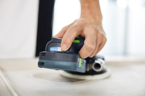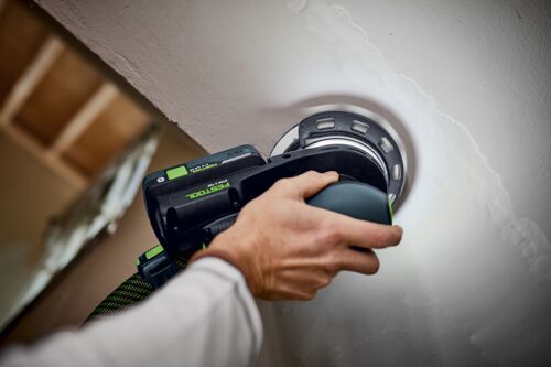 Tanto si trabajas en el taller como en un lugar de difícil acceso, la lijadora excéntrica a batería ETSC 2 te ofrece la máxima libertad de movimiento al lijar. El anillo de luz LED integrado mejora la visión de la superficie y revela cualquier irregularidad durante el lijado. El movimiento de lijado excéntrico, por su parte, proporciona una calidad de superficie excelente, sin necesidad de caros retoques. La potente batería de 4,0 Ah garantiza un avance rápido del trabajo y es compatible con tus herramientas a batería y cargadores de 18 V. Gracias a su baja altura total, la lijadora se ajusta cómodamente en la mano, facilitando el trabajo en superficies planas o por encima de la cabeza.