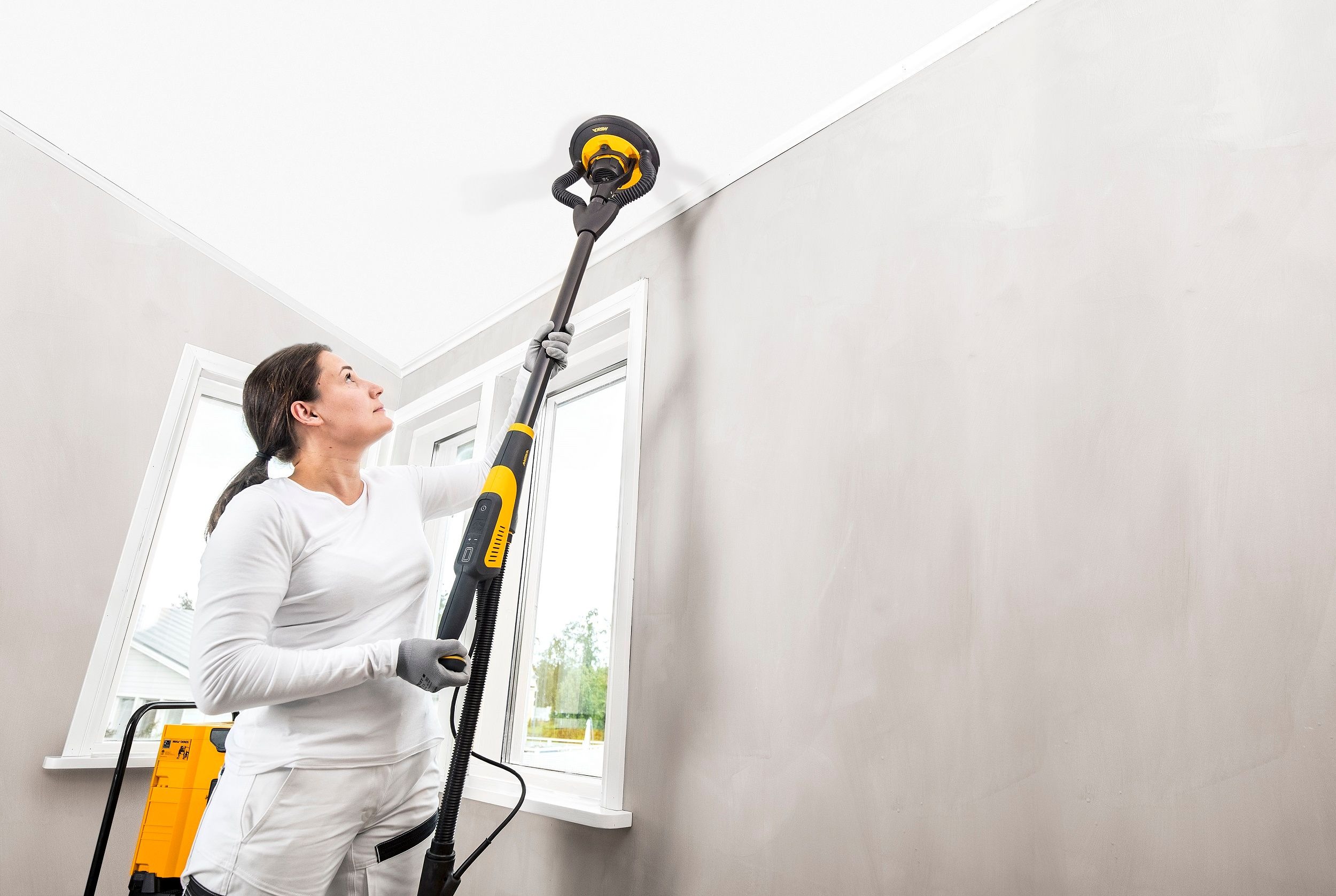 Gracias a su bajo peso, tan sólo 3,5 kgs., el usuario puede lijar durante períodos más largos realizando un menor esfuerzo. La lijadora Mirka LEROS 950CV es la primera lijadora de paredes con cabezal flexible a 180º, permitiendo al usuario alcanzar la superficie desde todos los ángulos con una posición de trabajo más ergonómica.