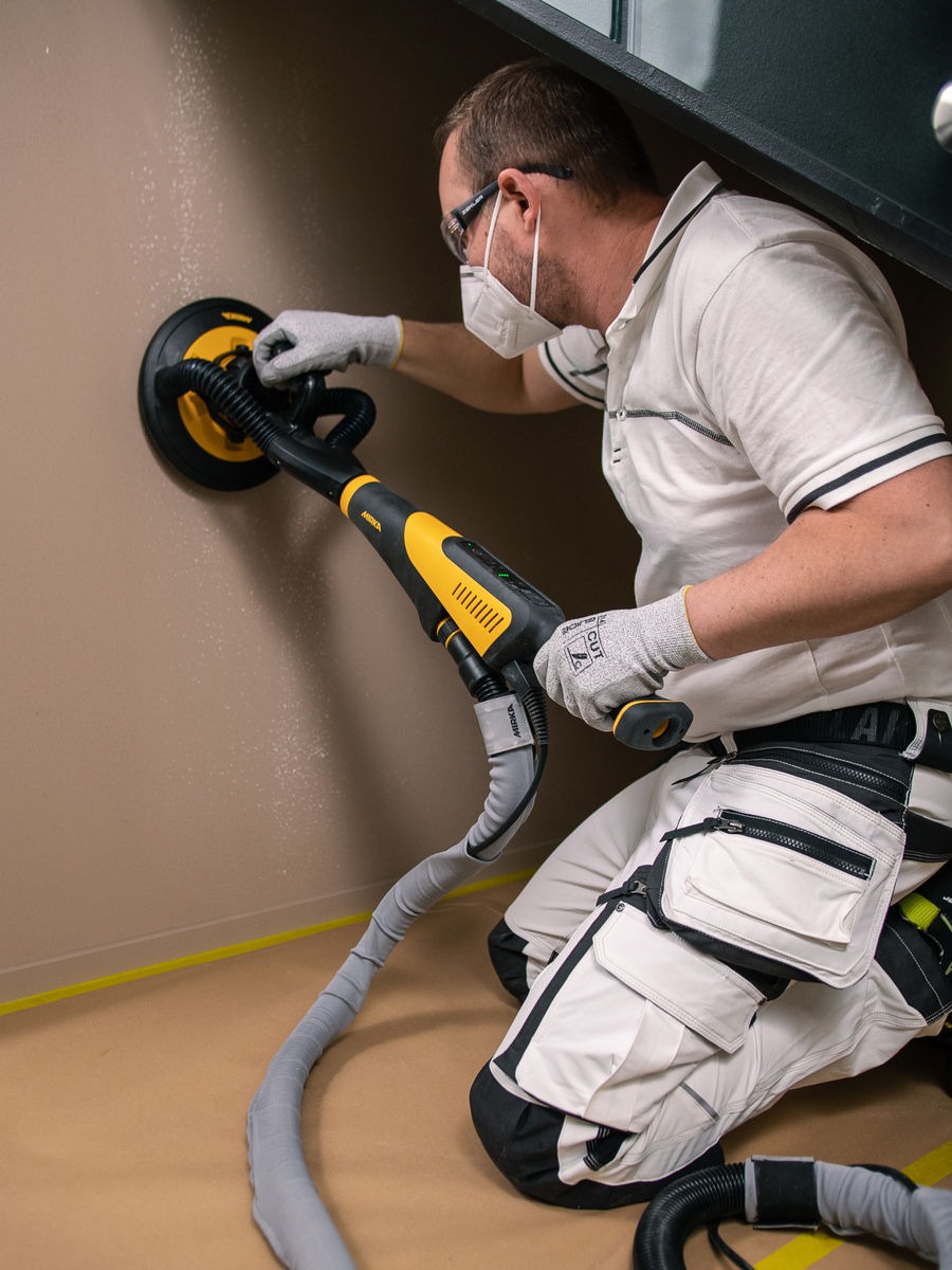Lijadora de pared Mirka Leros de 225 mm de diámetro sin escobillas para paredes, techos y grandes superficies única en su género. Su peso ligero (sólo 3,2 kg.) permite utilizar la lijadora durante más tiempo con mayor comodidad, y la gran flexibilidad del cabezal de lijado ayuda al operario a alcanzar las superficies desde un mejor ángulo y con una posición de trabajo más ergonómica. Su movimiento rotorbital da respuestas precisas a los movimientos del operario. El diseño especial del cabezal de lijado y del plato permite trabajar muy cerca de esquinas y bordes. Además, el punto de fijación del cabezal de lijado está cerca de la superficie, estabilizando el proceso de lijado. La conectividad Bluetooth ofrece funciones adicionales a través de la aplicación myMirka, que ayuda a realizar un seguimiento de la vibración, la velocidad y los datos de uso. Este modelo más compacto es ideal para espacios reducidos donde trabajar con una lijadora de paredes más larga sería complicado. Mirka® LEROS-S es ideal para lijar en habitaciones pequeñas como baños y vestidores. Añadiendo la extensión podrá alcanzar zonas más altas. El plato de 225mm también permite lijar áreas grandes de forma más rápida y fácil que con lijadoras más pequeñas, siendo ideal para nivelar grandes áreas y superficies. Este modelo dispone de dos puntos de agarre especiales cuya ergonomía y seguridad aportan un control total sobre el proceso de lijado.