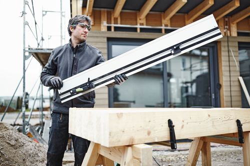 Inventado y perfeccionado por Festool: El riel de guía. Para cortes y ranuras que convencen por su precisión. Con recubrimiento antiadherente para que las herramientas se deslicen fácilmente, una ranura para mordazas de rosca o palanca, o la protección antiastillas para serrar sin desgarros. En 1964, se marca un hito en materia de precisión y simplicidad en el trabajo. El original está disponible en 8 longitudes diferentes, de 800 a 5000 mm.